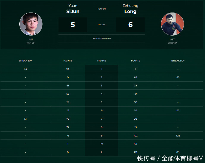 第七局和第八局,又是袁念念俊连胜两局AG炸金花,5-3再度高出并取得2个赛点。莫得退路的龙泽煌想要晋级,就必须连胜三局,而他作念到了。第九局到第十一局,他轰出单杆102分、89分,连扳三局6-5逆转晋级。
