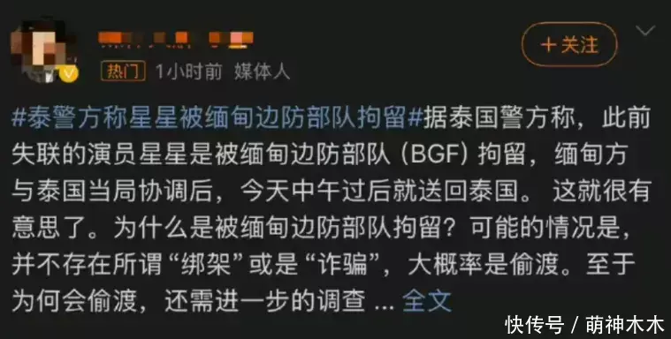 从1月5号王星女友发文求援,到1月7号王星被接回泰国,夹在内娱稠密大瓜之中,短短两天期间,王星就获救了,不错说全靠他的女友反馈实时,况且全程积寒冬静搪塞,为王星争取到了贵重的契机。