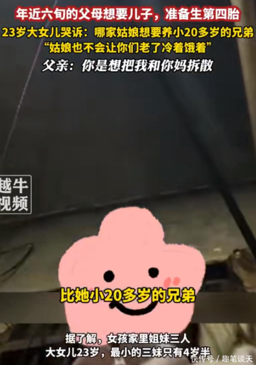 这是这几天发生在贵州的事情,一个女子发出来一段视频,在视频中她声嘶力竭的反对父母要四胎。因为她的父母,尽管已年近六十,却依然怀揣着再生一个男儿的梦念念。要知谈这位女子天然没说我方是老几,可是咫尺也曾23岁了,也曾成年并且对社会有我方的理会。她平直跟父母摊牌,我方无法理会也无法接纳这么的决定,她申斥谈:“哪一家的小姐要养比她小20岁的兄弟?”